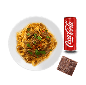 Un plat de pâtes au choix + 1 Dessert au choix + 1 Boisson 33cl au choix.