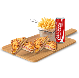 Pain au choix, 3 steaks, cheddar + Frites + 1 Boisson 33cl au choix.