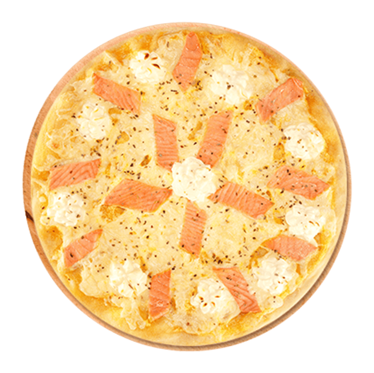 Sauce tomate, mozzarella, saumon fumé, crème fraîche, citron.